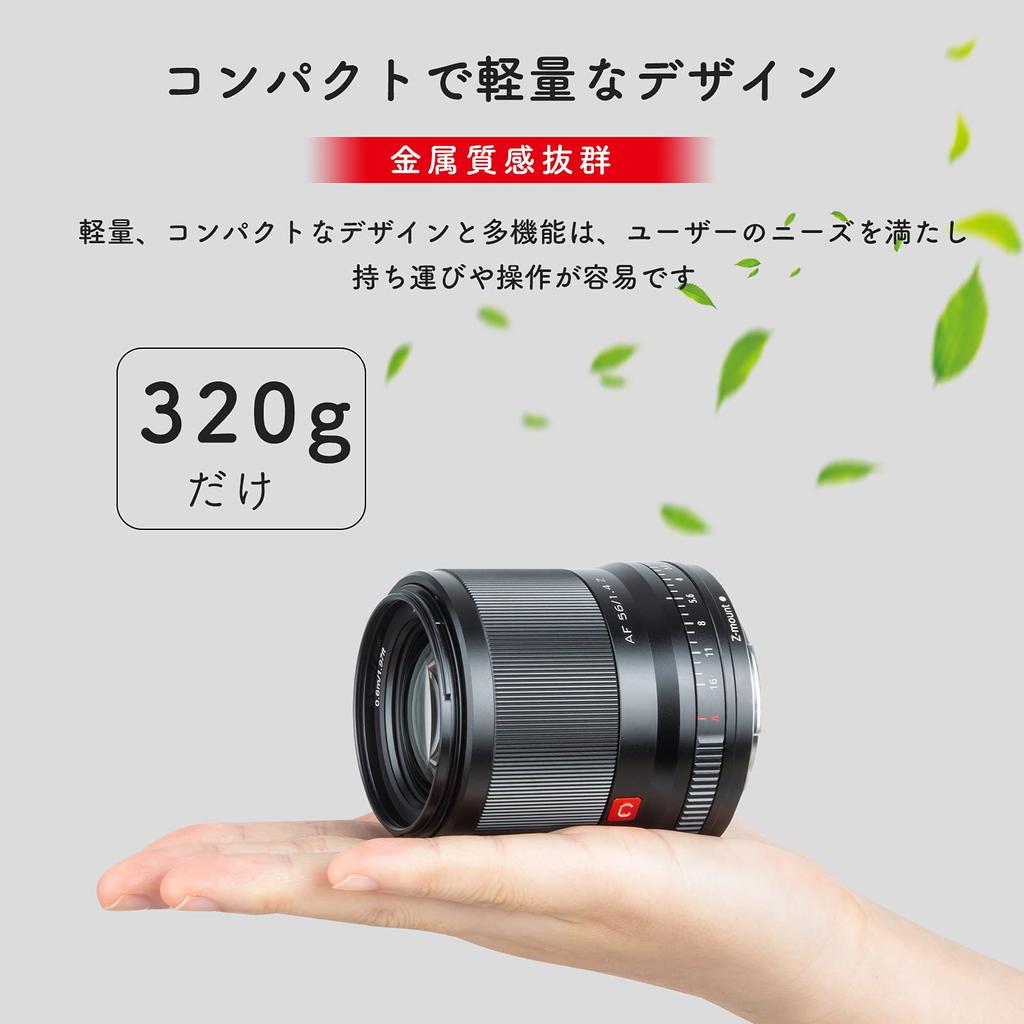 Lightweight Design: The VILTROX AF 56mm F1.4 Z is an APS-C prime lens for Nikon Z-mount cameras. Its compact and lightweight design weighs just 320g, making it extremely portable. It enhances mobility and makes long shoots easier. Because it's APS-C compliant, the 56mm focal length is equivalent to an 84mm format, making it ideal for a wide range of photography scenarios, including portraits, landscapes, interiors, architecture, and nightscapes.