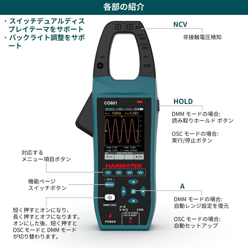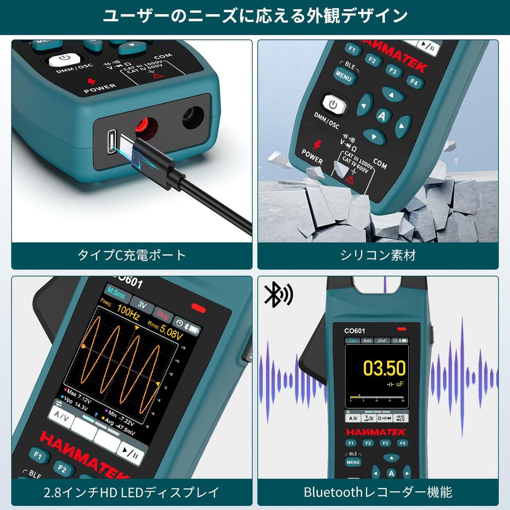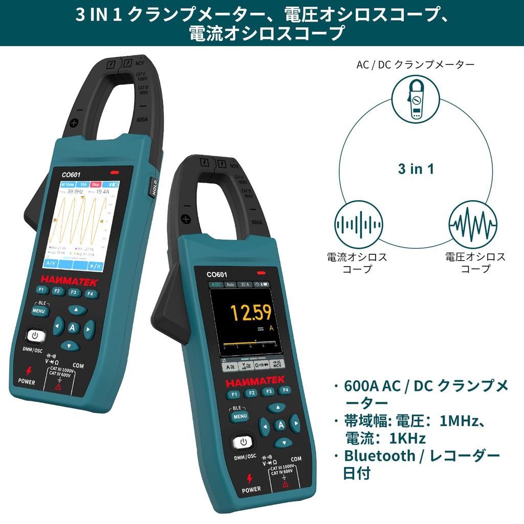 HANMATEK CO601 Handheld Digital Clamp Oscilloscope with TFT USB Advanced Trigger and Portable for Fieldwork 5.0MSa/s High-Precision Sampling, 2.8-inch