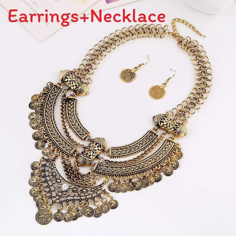 Монета Античная Отделка Ожерелье Серьги С Массивной Цепью Женские Элегантные Аксессуары