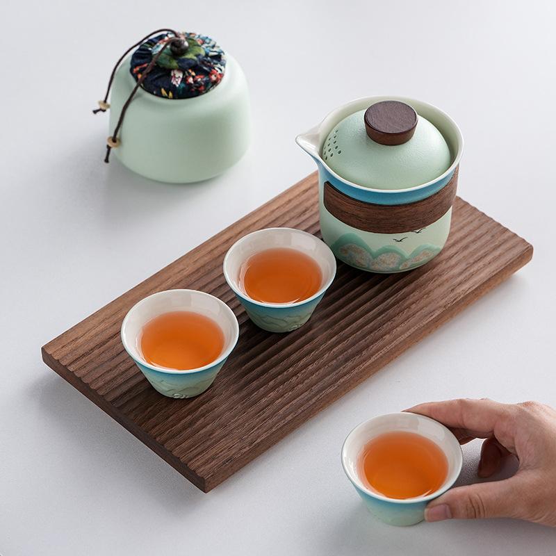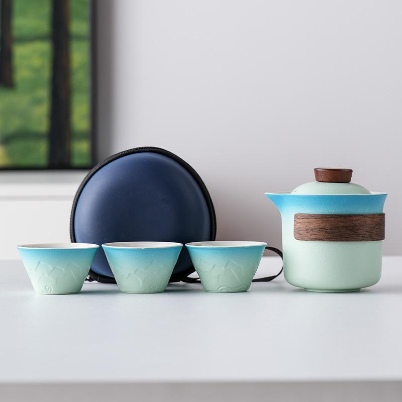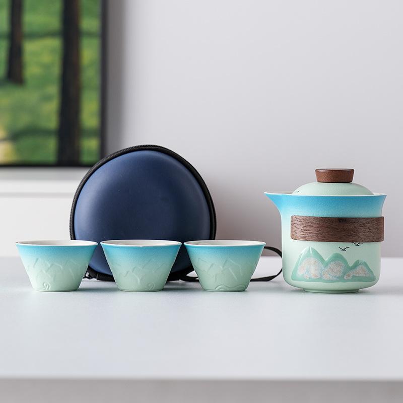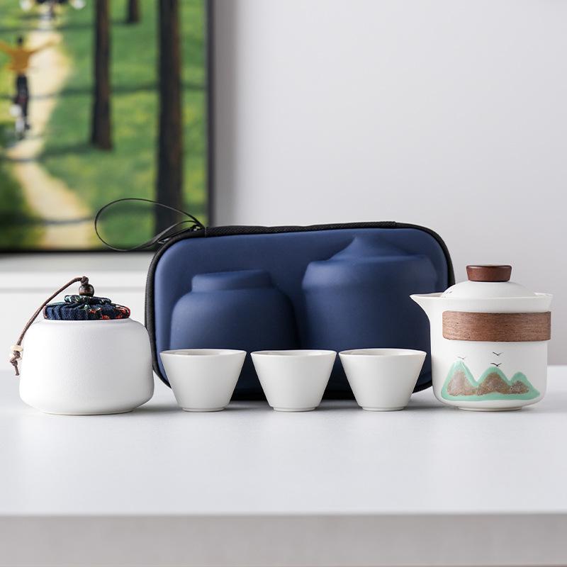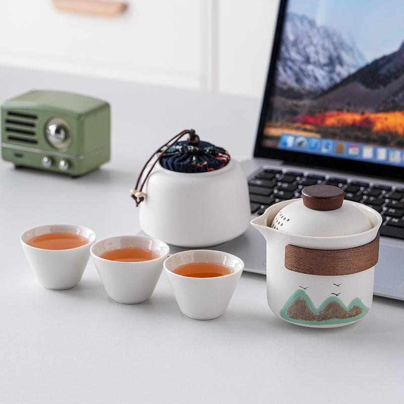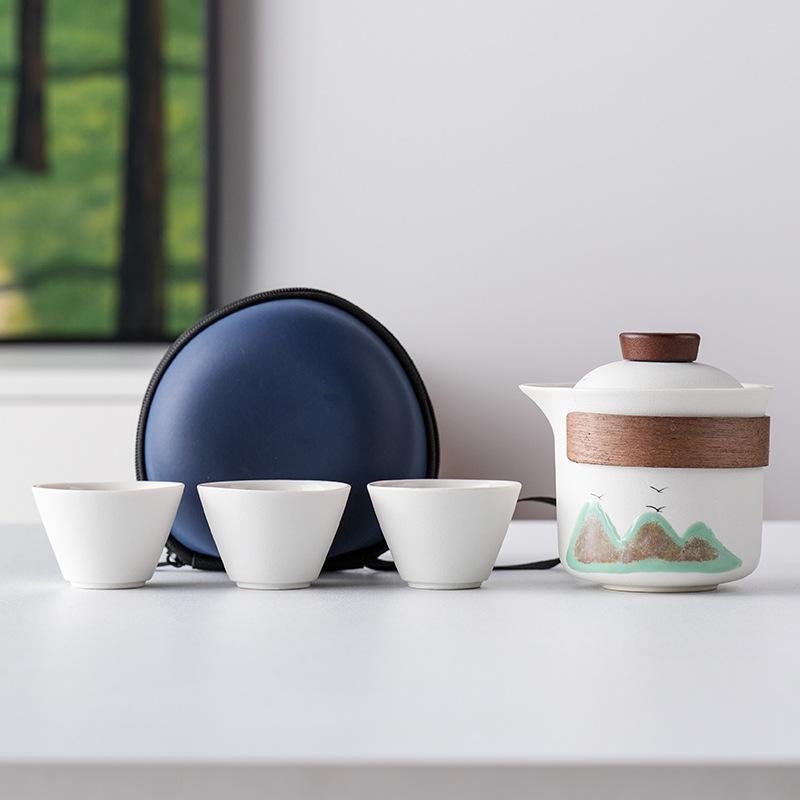 Легкий роскошный расписанный вручную набор для чая из одного чайника и трех чашек, высококлассный дорожный набор для путешествий, портативный набор, чайник, чайная чашка, деловой памятный подарок