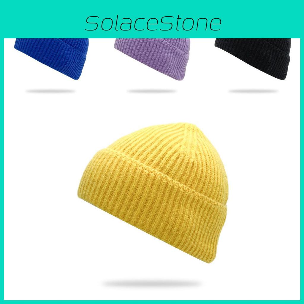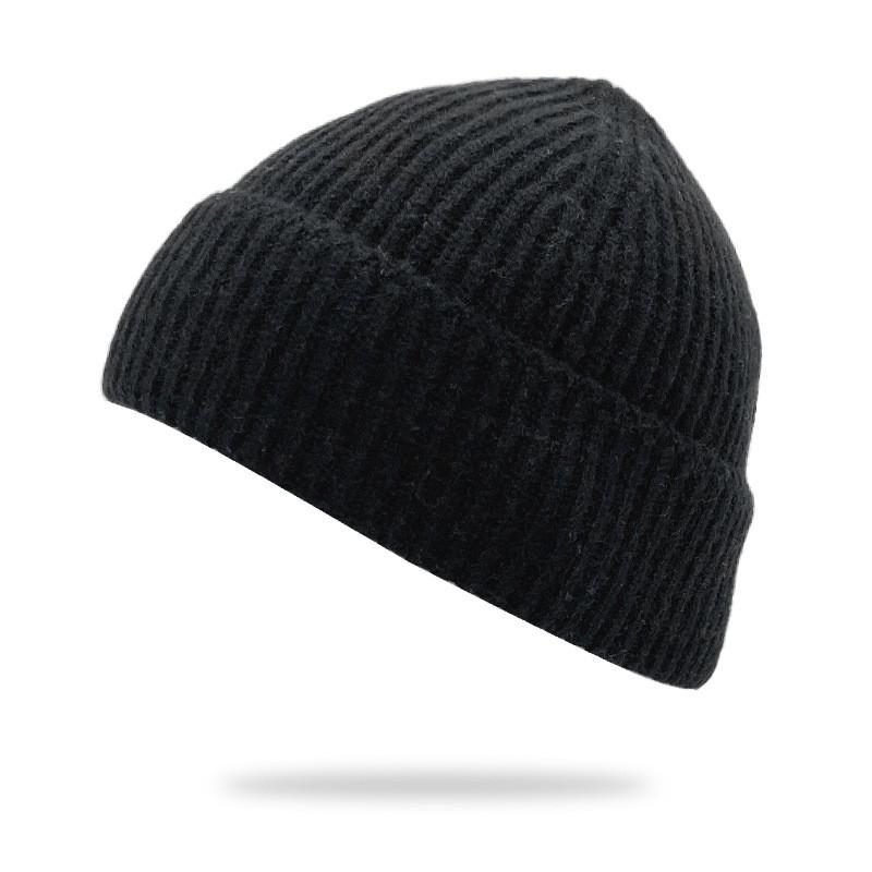 Solidcolor Knitted Thickstripe Hat Black Unisex Warm Winter Overthehead