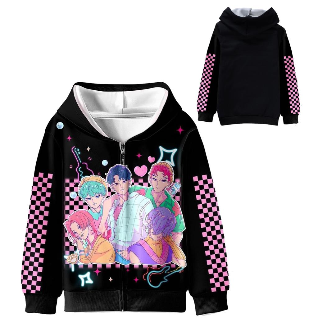 KPop Demon Hunters Girl Coat Fashionable Zipper Hoodie Autumn Winter Cute Cartoon Casual Fashion Daily Comfortable Zipper Hoodie