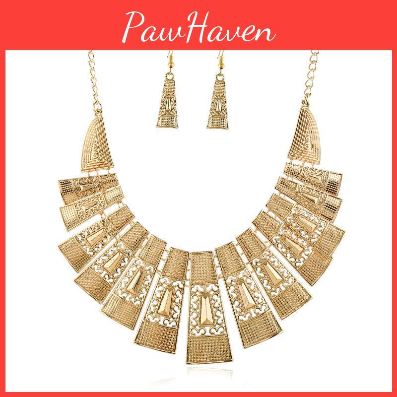 Этот ювелирный набор в винтажном стиле имеет геометрический дизайн из сплава с полыми акцентами, включая ожерелье и подходящие серьги.. и доступны в цветах белого золота, золота, розового золота и античного серебра. Идеально для добавления отличительной изюминки к повседневному или формальному наряду. Для поддержания внешнего вида протирайте мягкой тканью.