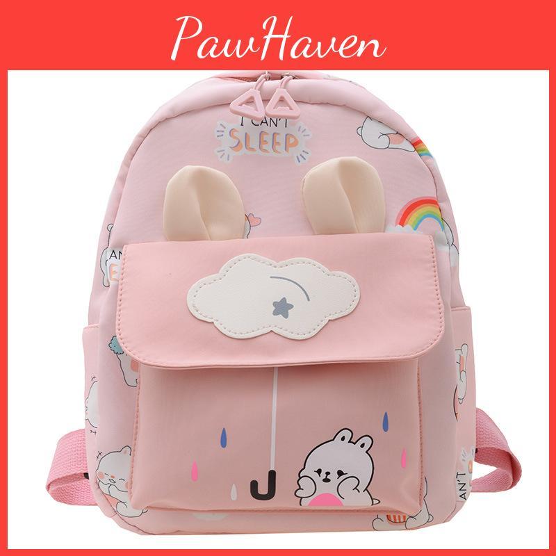 Backpack Kids With Cartoon Rabbit Print And Ear Design For School And Outings