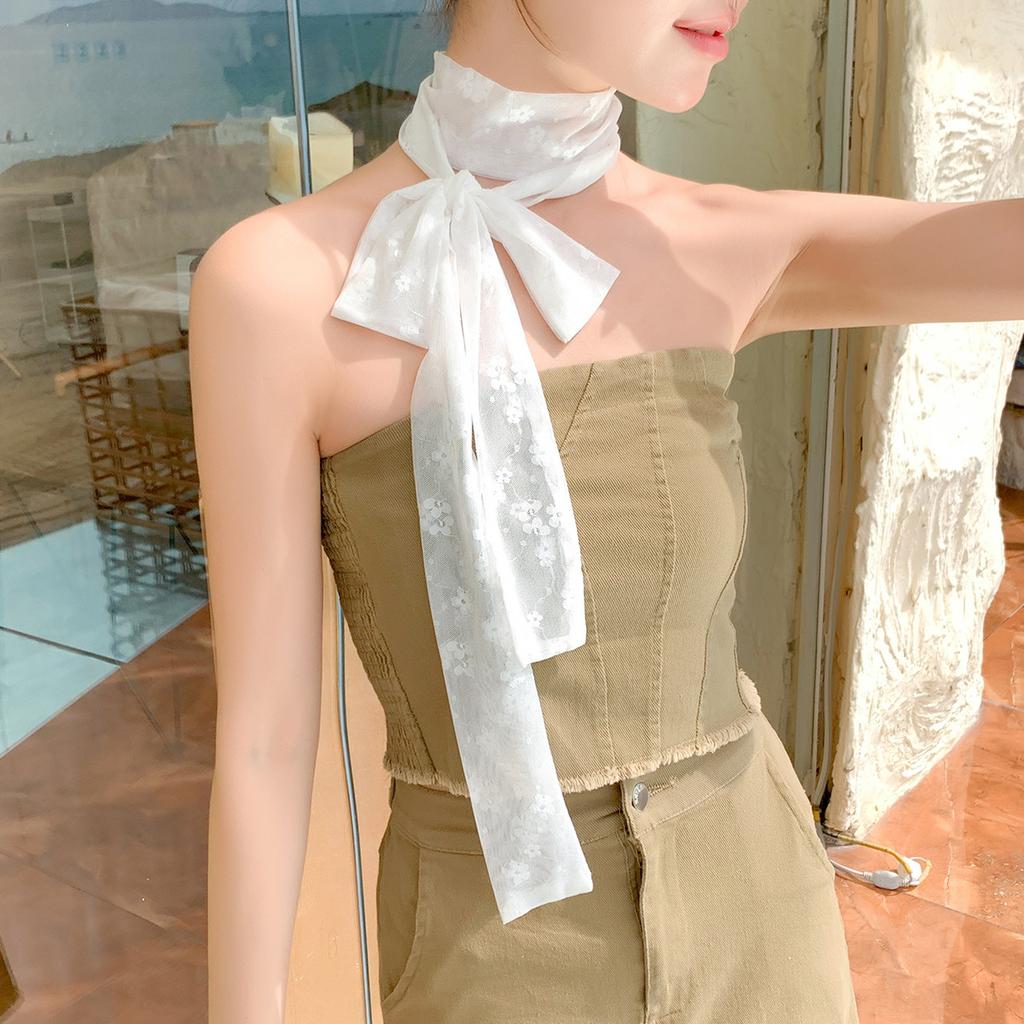 Новый кружевной цветочный шарф для волос, длинная узкая лента, головной платок, полоска, шарфы, регулируемая дорожная фото-повязка на голову для женщин, маленькие шарфы