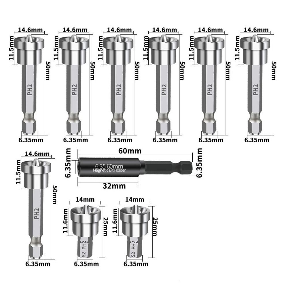 10pcs/set 25/50mm Positioning Screwdriver Bits Hex Shank Drill Bit Locating Batch Head Gypsum Board