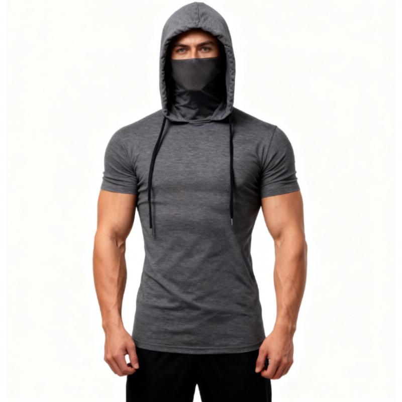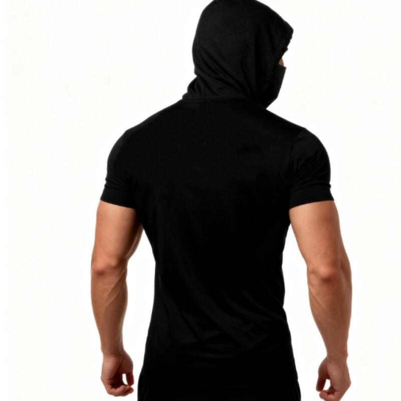 Летняя мужская толстовка с капюшоном, повседневная футболка с коротким рукавом свободного кроя, однотонная, легкая толстовка, фитнес, дышащие топы