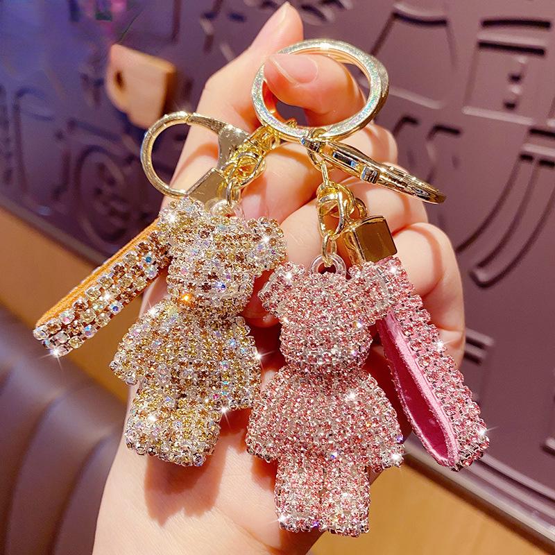 Милый брелок с кисточкой из стразов в виде медведя, парный брелок, украшение для девочки, маленькая подвеска, кольцо для ключей от машины, подвеска для студенческой сумки