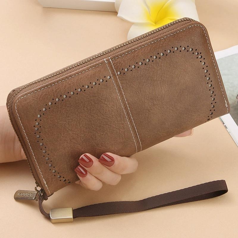 Женский полый кошелек на молнии, кожаный клатч, ретро, женский полый органайзер для карт, большой вместимости, длинный держатель для карт и мобильного телефона
