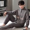 Пижама из воздушного хлопка мужская осенне-зимняя утолщенная хлопковая с длинным рукавом с промежуточным слоем мужской зимний тонкий стеганый комплект домашней одежды