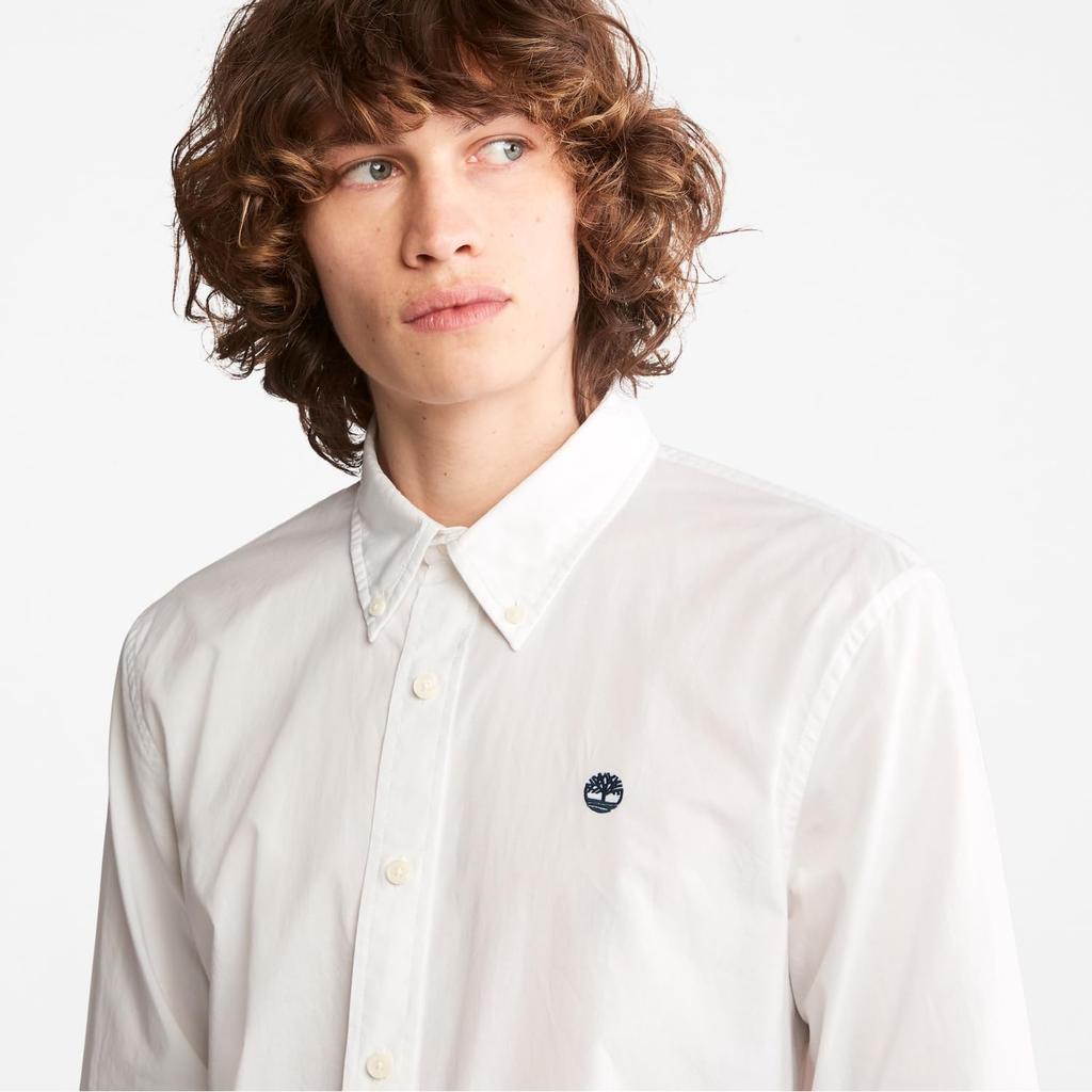Timberland Men's Long Sleeve Washed Poplin Shirt, White, Size XL, TB0A2ERT1001