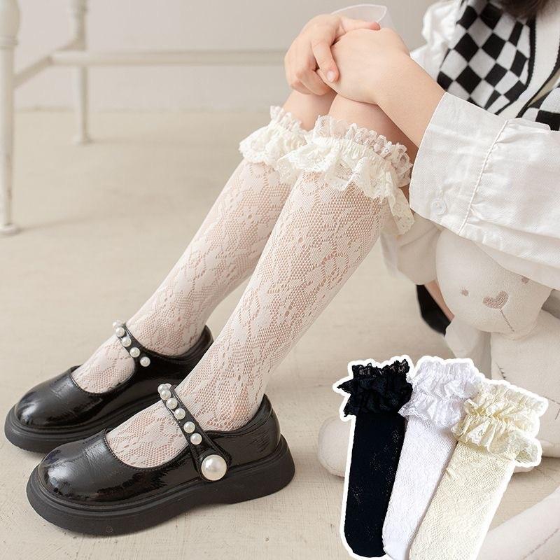 Flower Vine White Middle Socks New Lolita Lace Flower Socks Lolita Girl Mid Calf Socks Korean Version of Mid Length Socks