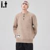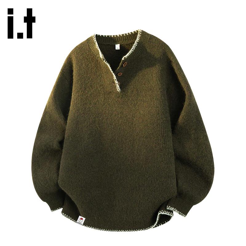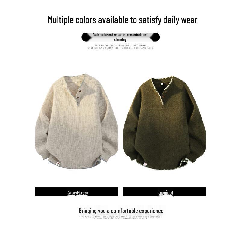 CHOCOOLATEit Унисекс Свитер вязаный из шерстяной смеси в японском стиле свободного кроя хенли