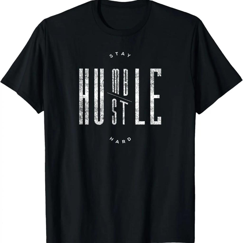Оставайся скромным и усердно работай. Цитата для предприимчивого предпринимателя. Футболка
