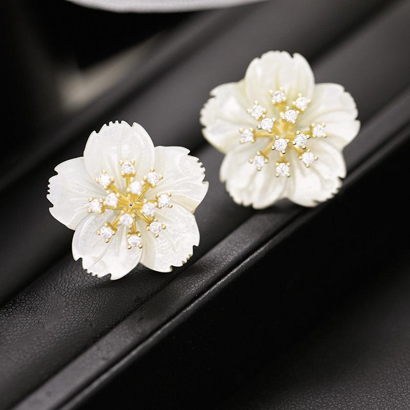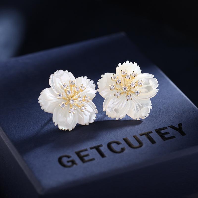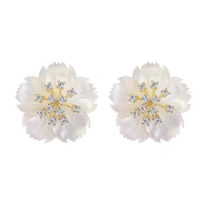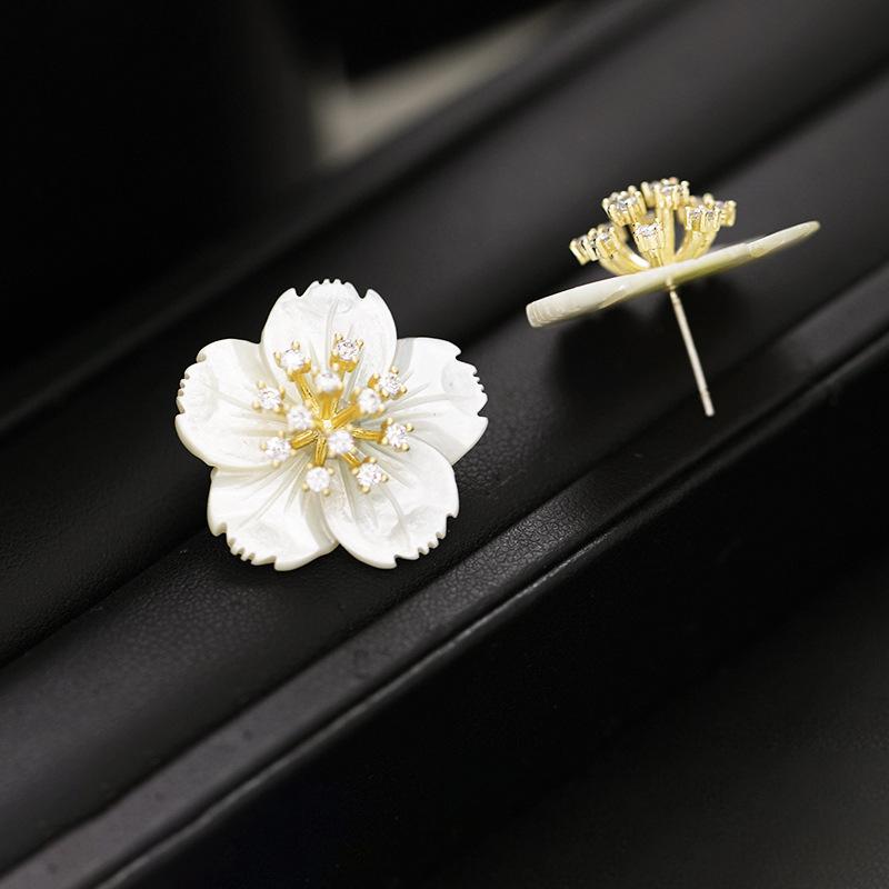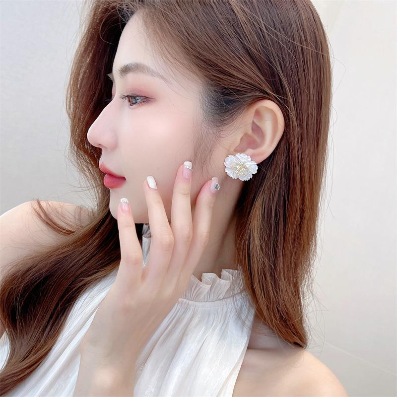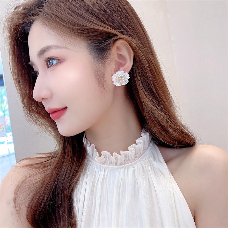 Элегантные белые серьги-гвоздики с цветком, золотые тычинки для женщин, большие двухслойные серьги с гарденией, модные украшения для вечеринок и темперамента