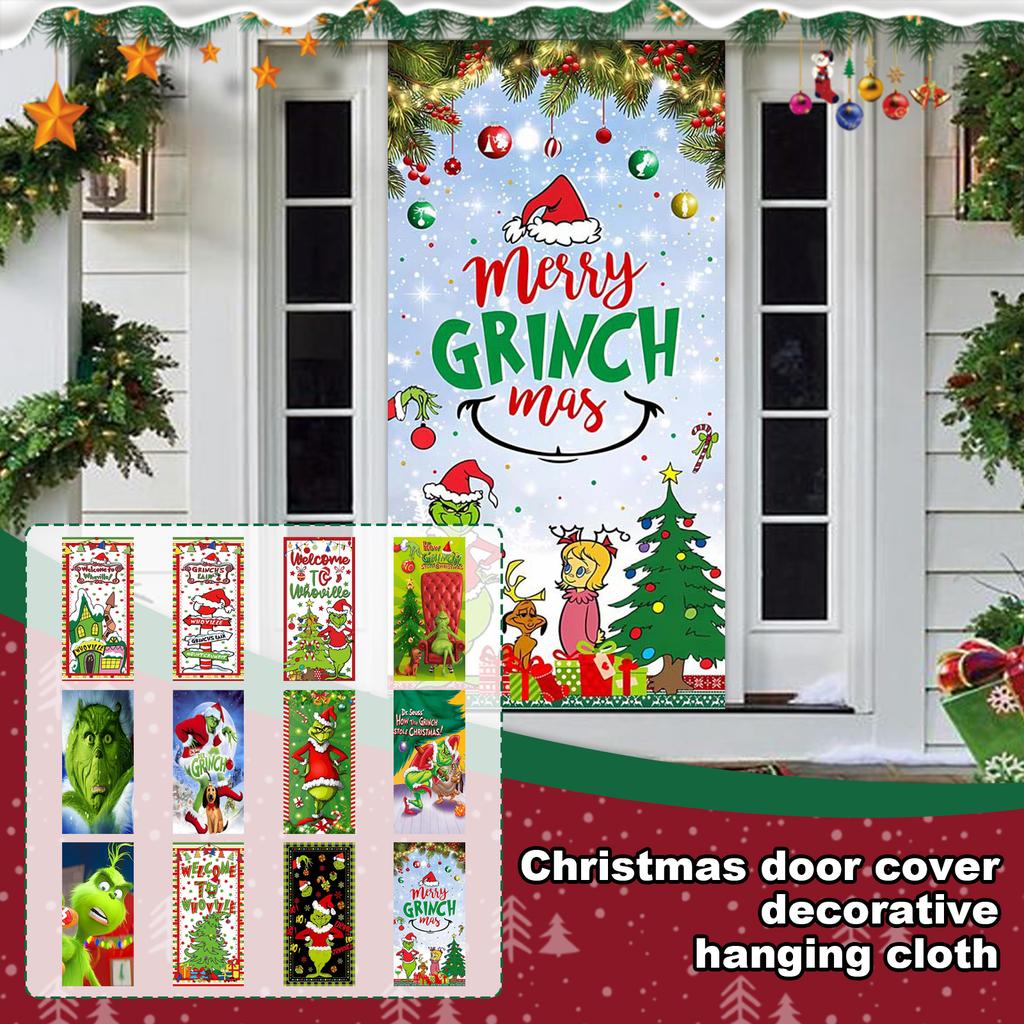 Рождественский чехол на дверь, декоративное подвесное полотно, зеленый чехол на дверь, рождественская дверная занавеска, новогодний гобелен, чехол на дверь, фон