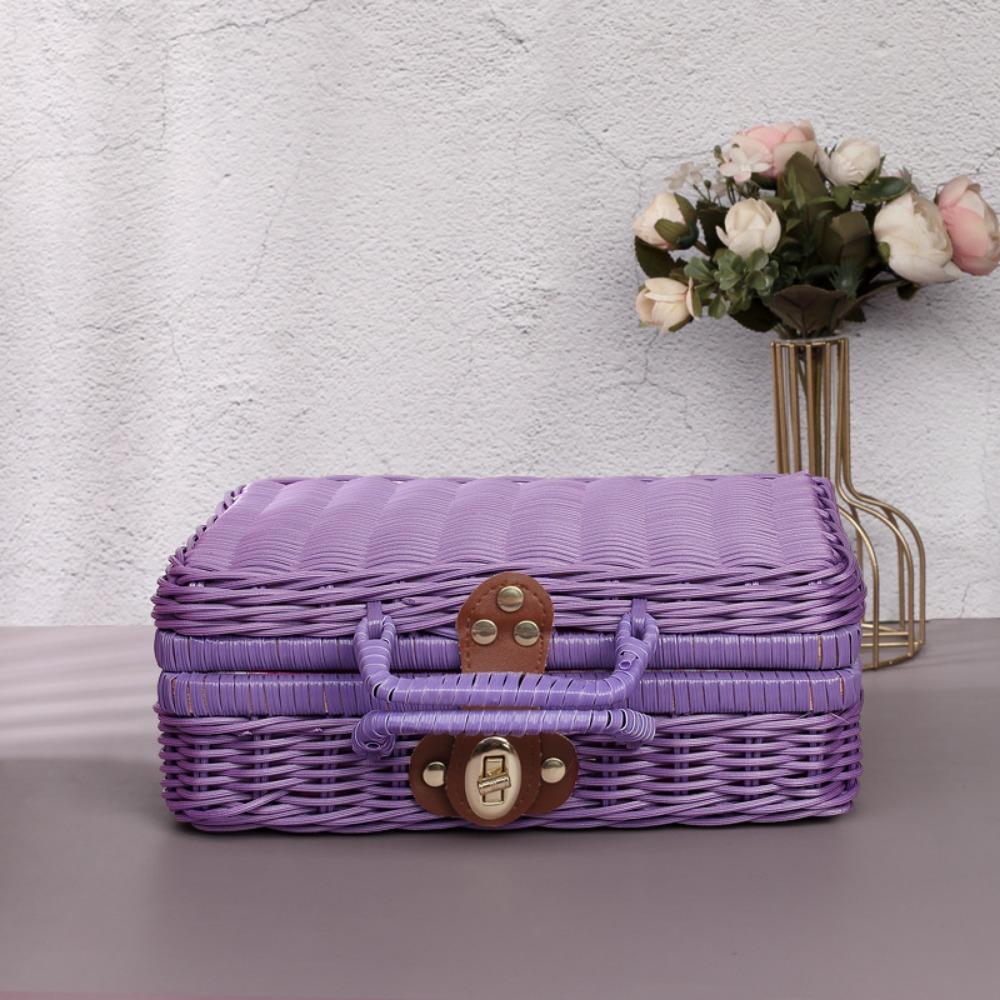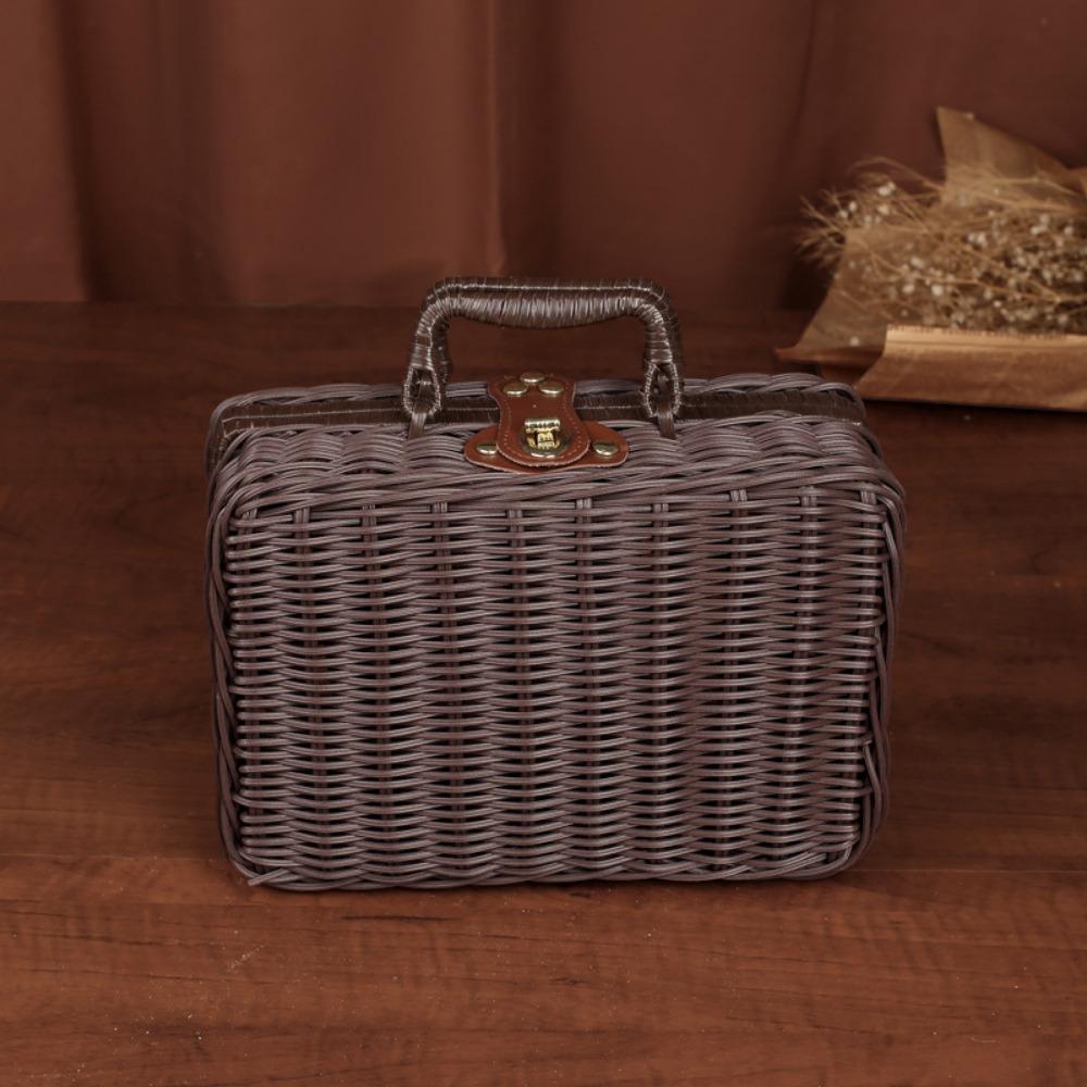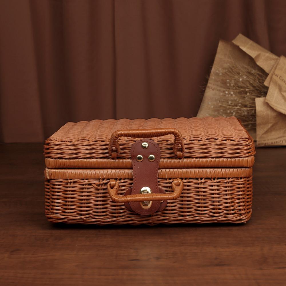 Плетеный ротанг имитация коробка для хранения ретро шкатулка для украшений косметичка пикник