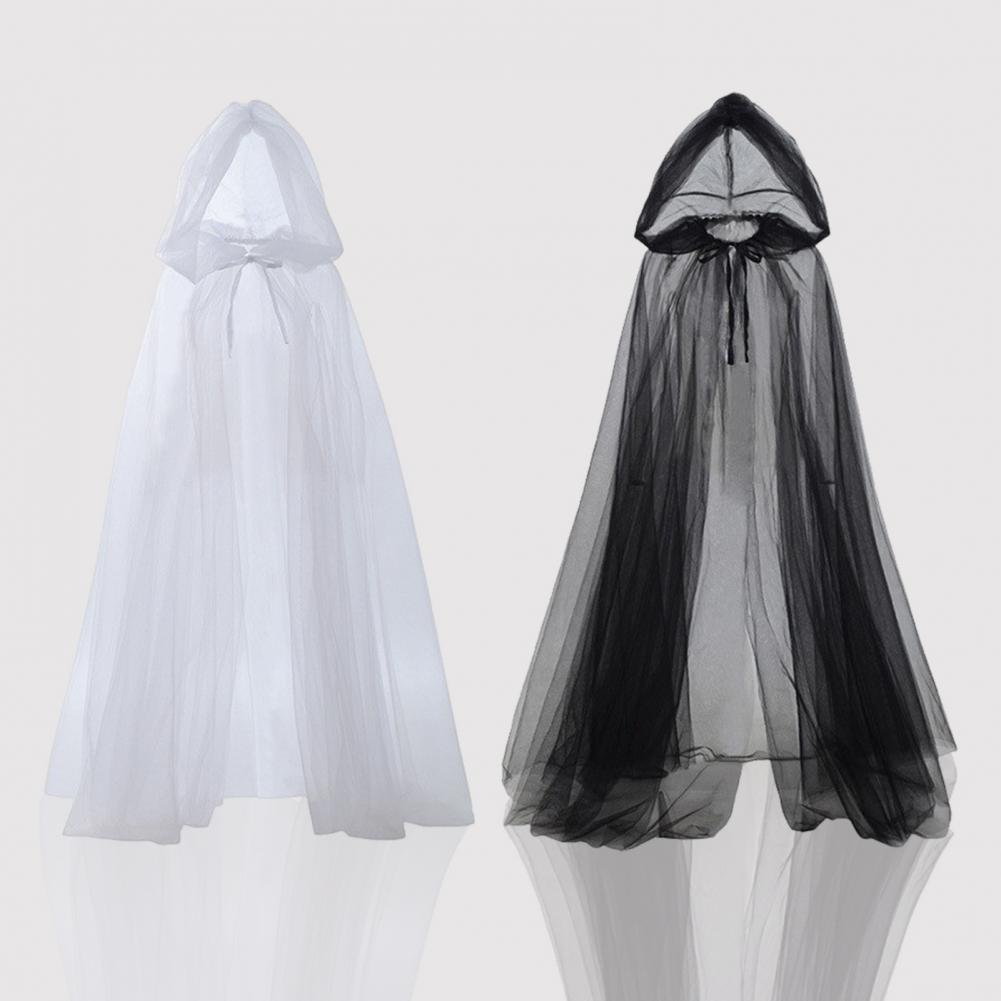 Хэллоуин Косплей Плащ Призрак Сетчатый Капюшон на Шнурке Накидка Плиссированный В Пол Готический Плащ Средневековые Сценические Накидки Костюмы
