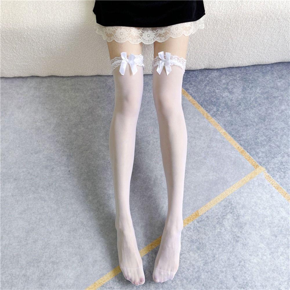 Длинные Носки Сексуальные Женские Кружевные Носки с Бантом Мягкие Удобные Сексуальные Длинные Носки Антифрикционный Нейлон Носки до Колена Высокие до Бедра Ночной клуб