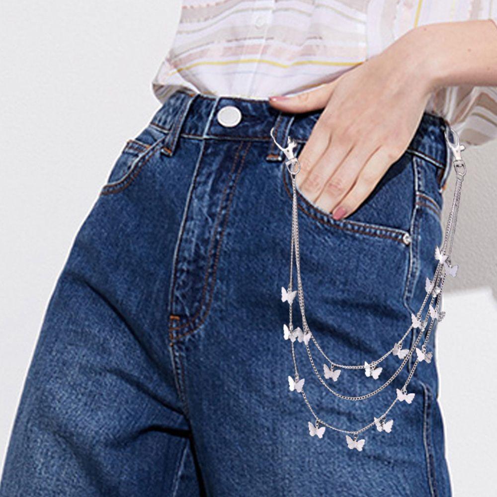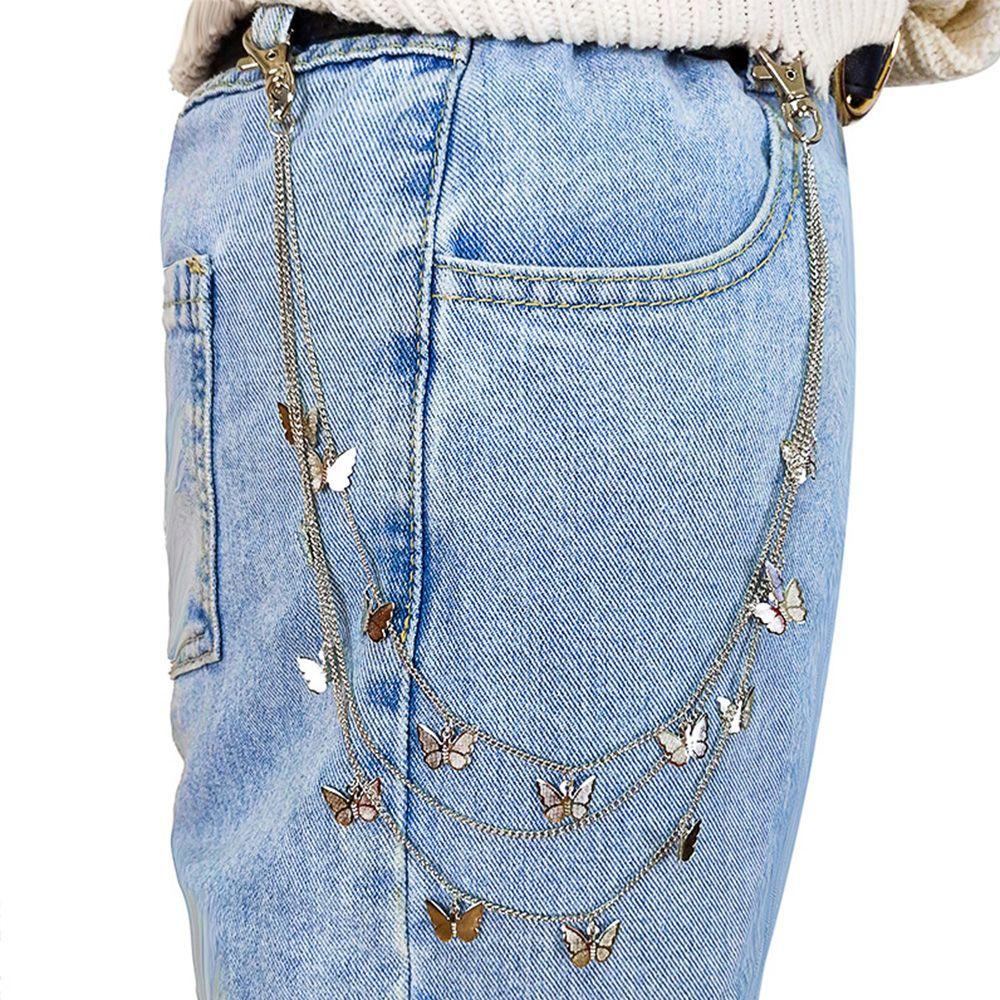 Аксессуары Мода Женщины Панк Многослойный Мужской Пояс Бабочка Ремни Цепочка для брюк Цепочка на талию