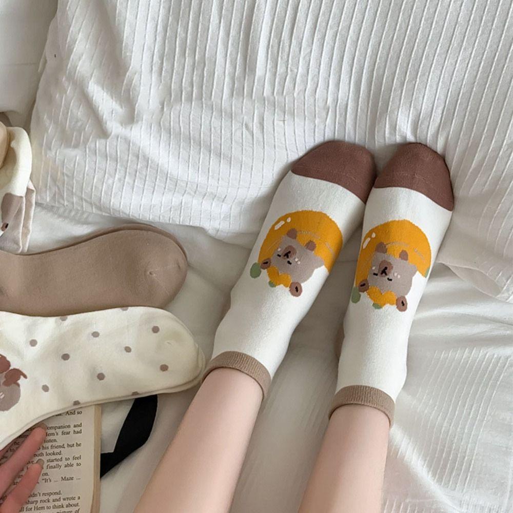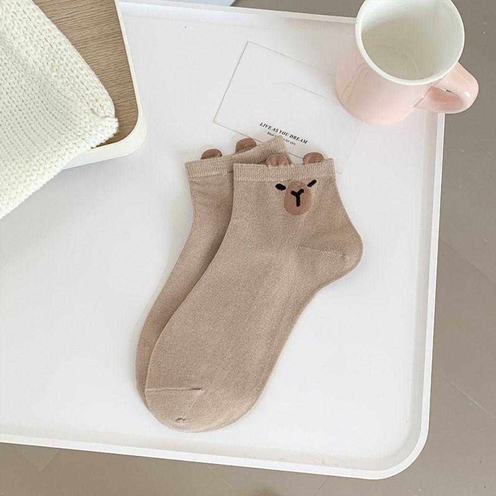 5 пар нескользящих носков до середины голени с капибарами, мультяшные носки, женские милые носки с капибарами, женские
