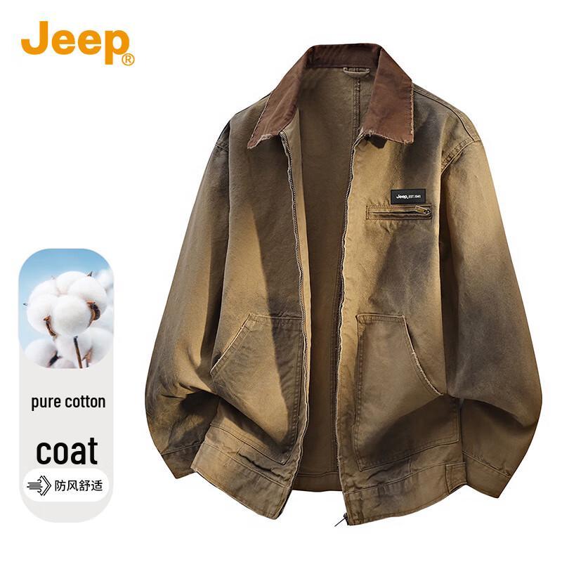 Jeep Мужская хлопковая куртка ретро с цветными блоками и лацканами — купить товар онлайн с бесплатной доставкой до всему миру!