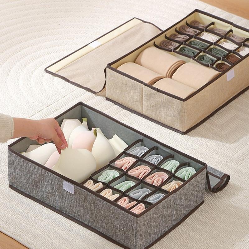 Улучшите организацию ваших ящиков с помощью этого дышащего тканевого органайзера с армирующей доской 530 г и текстурой льна, идеально подходящего для хранения и нижнего белья, сохраняя при этом структурную целостность.