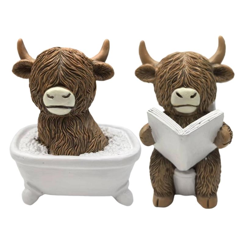 Durability Resin Toilet Seat Cow Statue Bathroom Ornamentation Sculpture With Smooth Surfaces Easy To Clean for Counter top