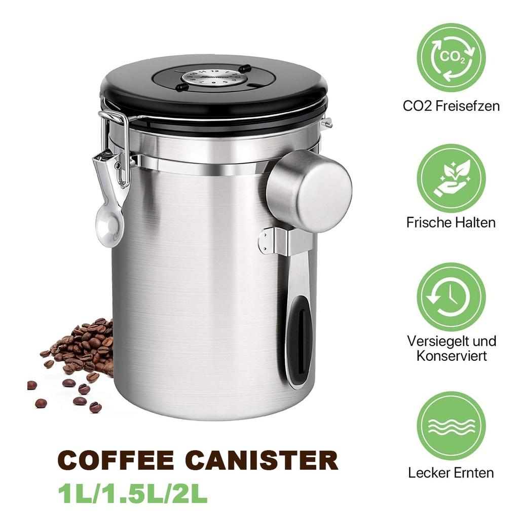 -【Высококачественный пищевой сорт 】Кофейная банка из нержавеющей стали, герметичный контейнер для кофе черный, кофейные канистры с мерными ложками сохраняют кофе свежим
