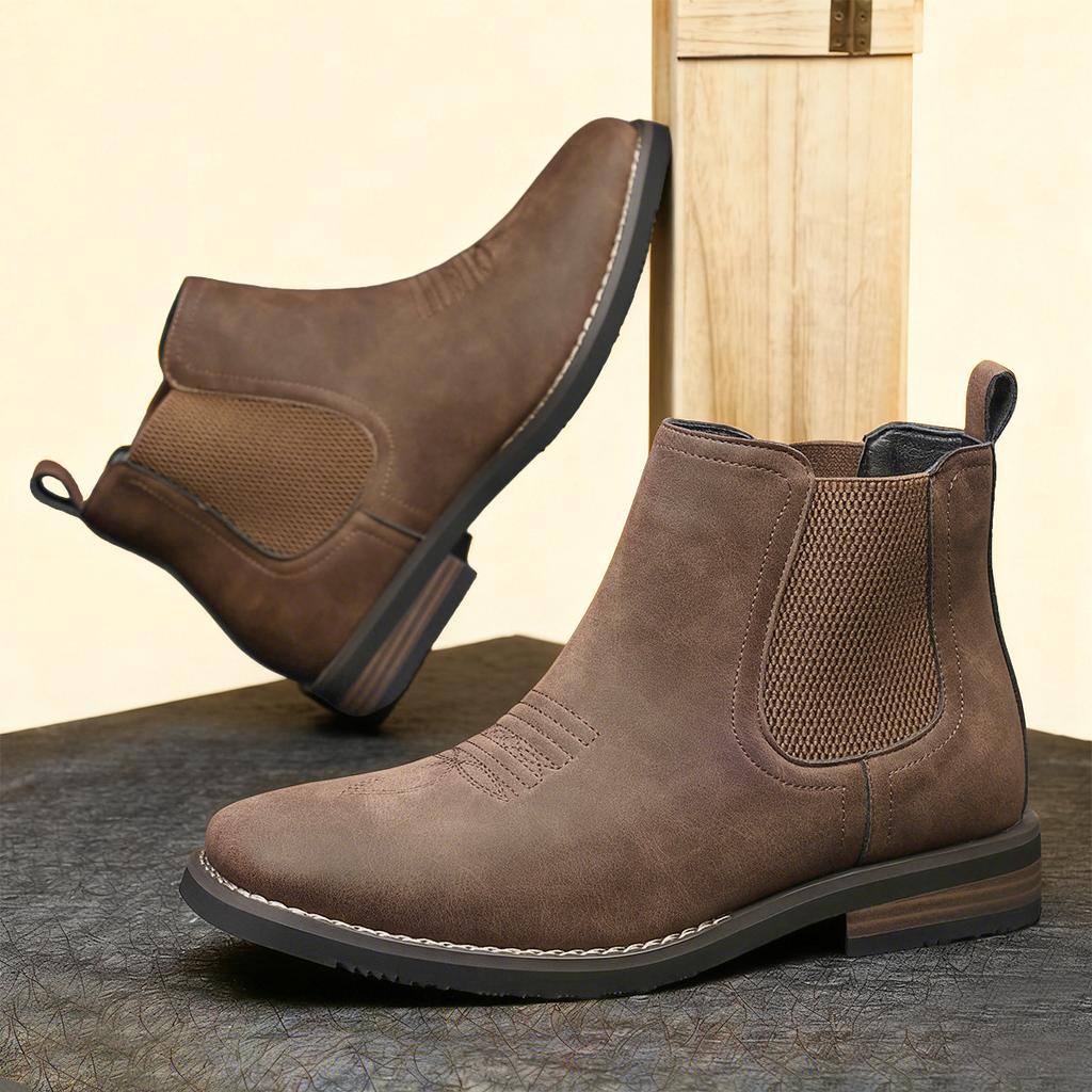 Мужские ботинки челси, повседневные кожаные ботинки, ретро ботильоны для мужчин, вышитые ботинки в стиле вестерн, ковбойские ботинки