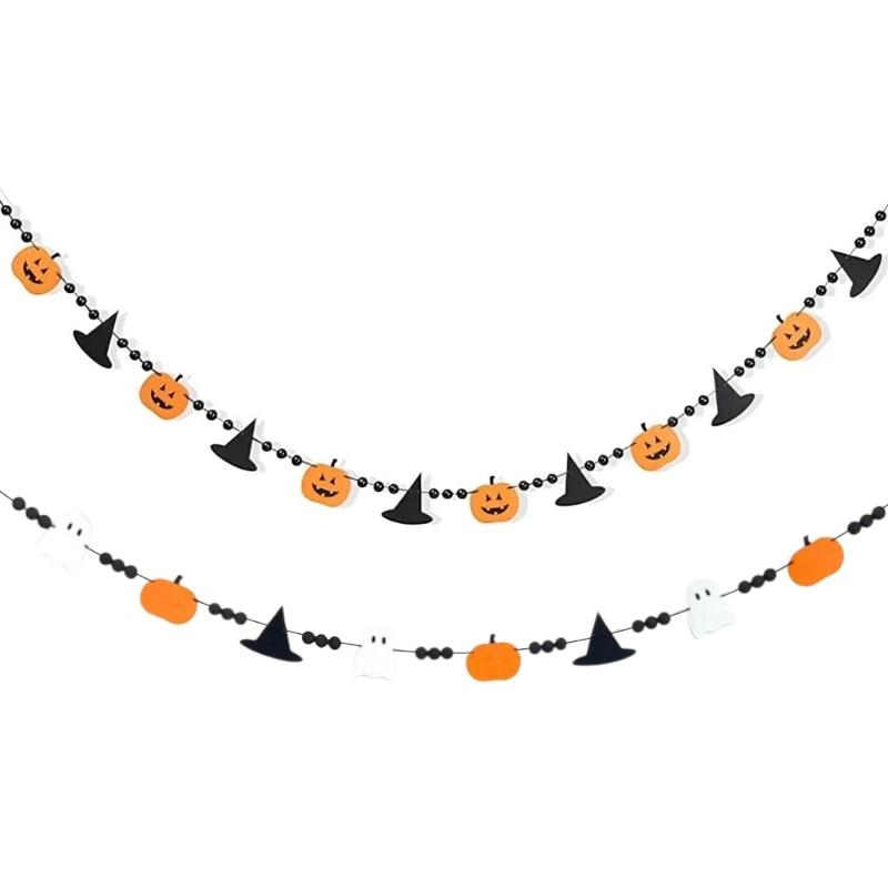 Reusable Felt Bunting Flags Handmade Witch Hat and Pumpkin Banners Halloween Decorations For Indoor Outdoors