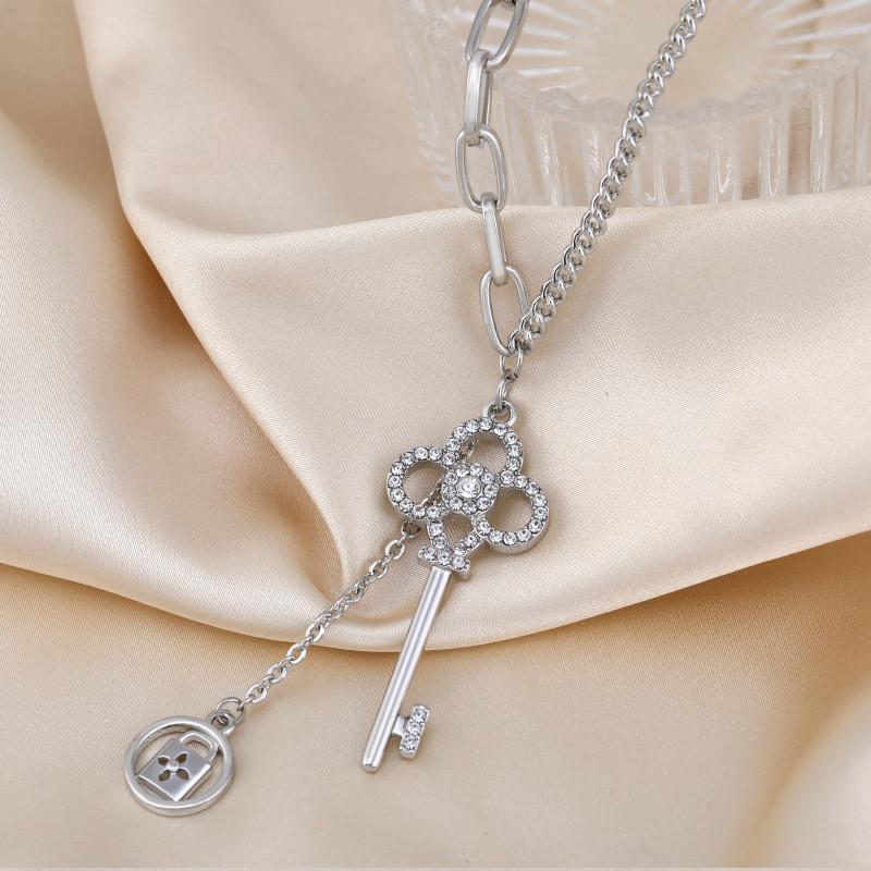 Поднимите свой уровень аксессуаров с нашим уникальным корейским модным ожерельем-ключом для женщин, эффектным изделием, сочетающим в себе вневременной дизайн и роскошную отделку.. Изготовленное из высококачественной титановой стали, это ожерелье может похвастаться сложной техникой обработки с бриллиантовой инкрустацией, которая усиливает его очарование.. Идеальное для тех, кто ценит сочетание современного стиля и классической элегантности, это колье является истинным отражением модных тенденций Кореи.. Благодаря кулону в форме ключа, он символизирует как тайну, так и очарование, что делает его идеальным акцентным элементом для любого наряда.