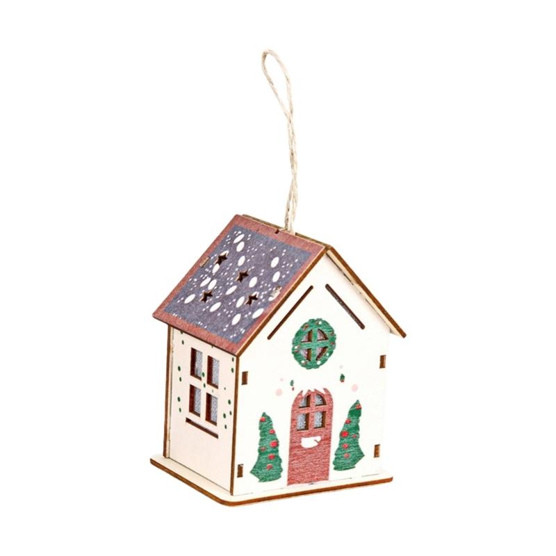 1Piece Glowing Wooden Christmas Cottage Ornament