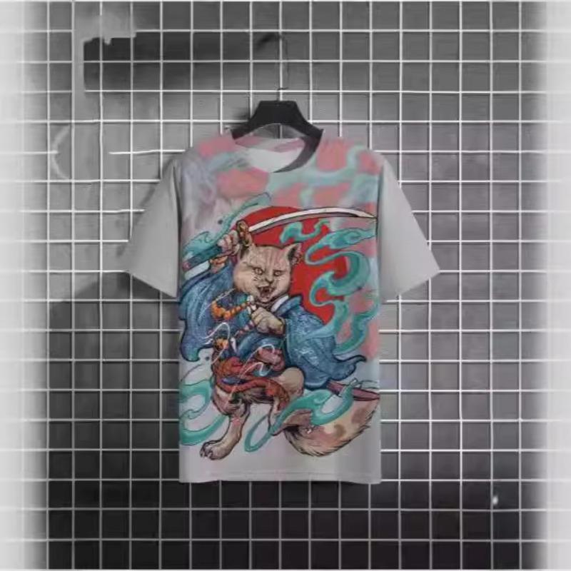 Fashion Print Cat Pattern T-Shirt Men's Casual Comfortable Short Sleeve Top Animal Cat Print