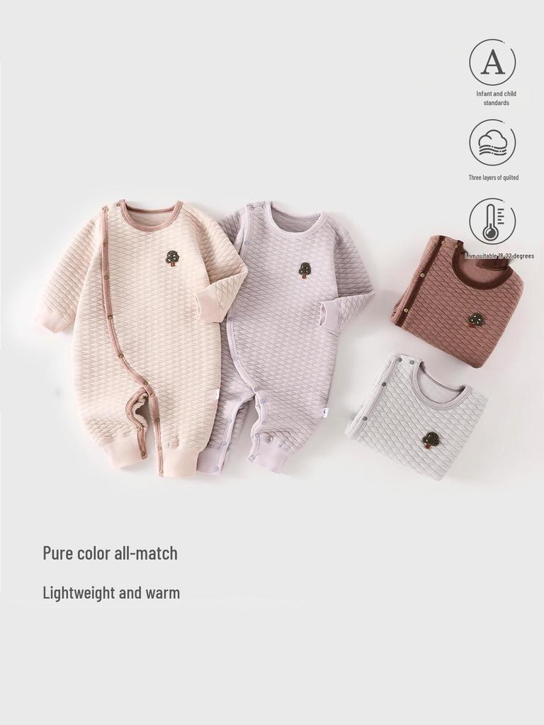 Детский ромпер с длинным рукавом класса А для весны и осени - Теплый комбинезон для младенцев с запахом