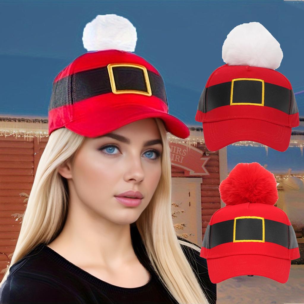 Рождественская бейсболка красная регулируемая бейсболка с пушистым помпоном