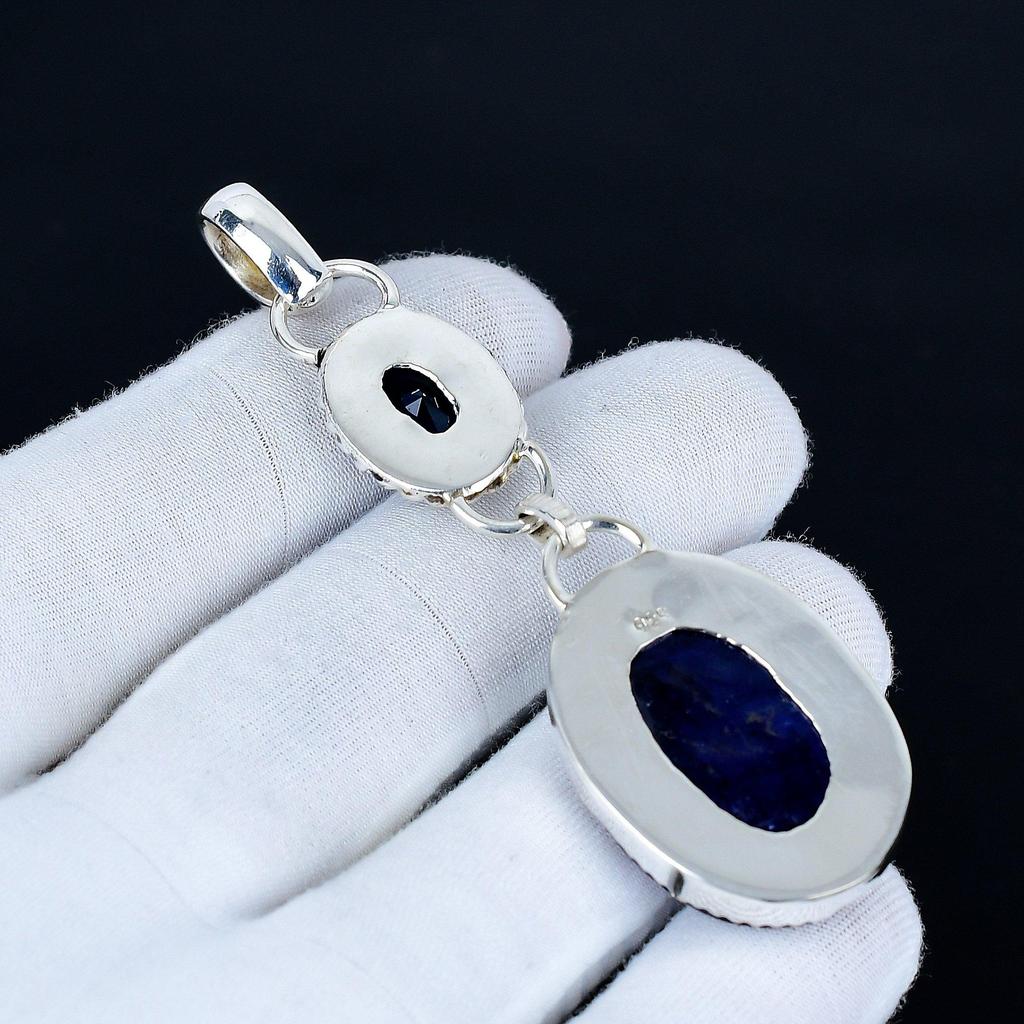 Подвеска с сапфиром, ручная работа, стерлинговое серебро 925 пробы, Серебряная подвеска с сапфиром, Украшения для вечеринки для женщин, Уникальный подарок-подвеска