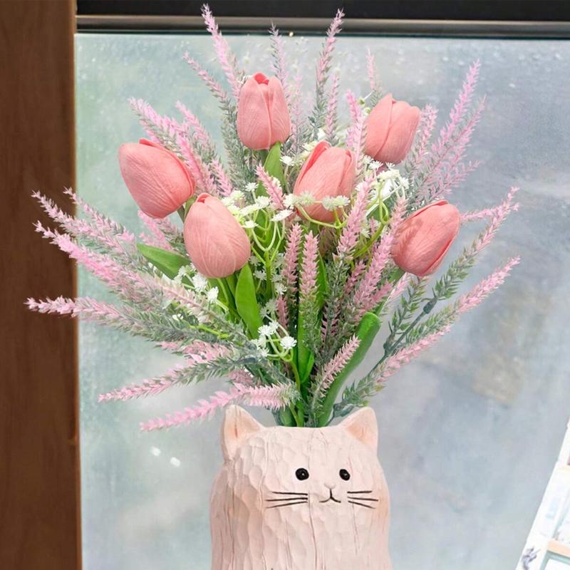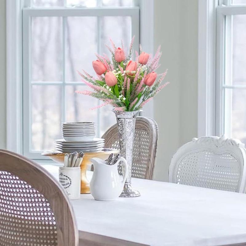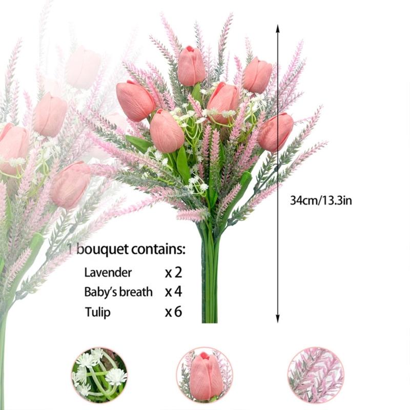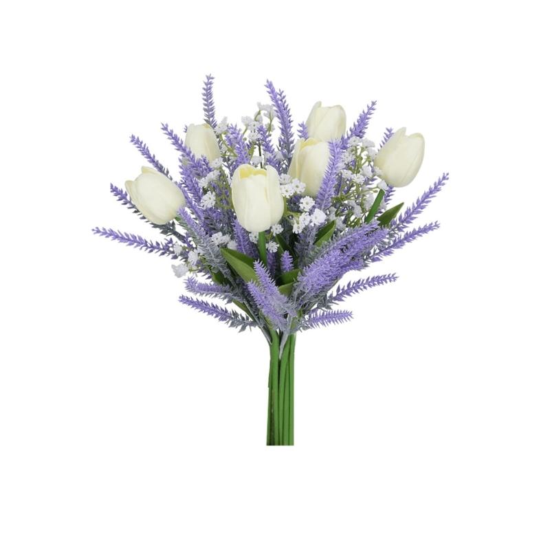 Spring Wedding Floral Arrangements 13Inch Faux Tulips Lavender Bouquet Silk Flower For Home Decoration