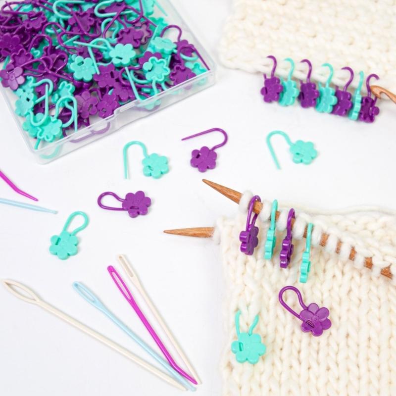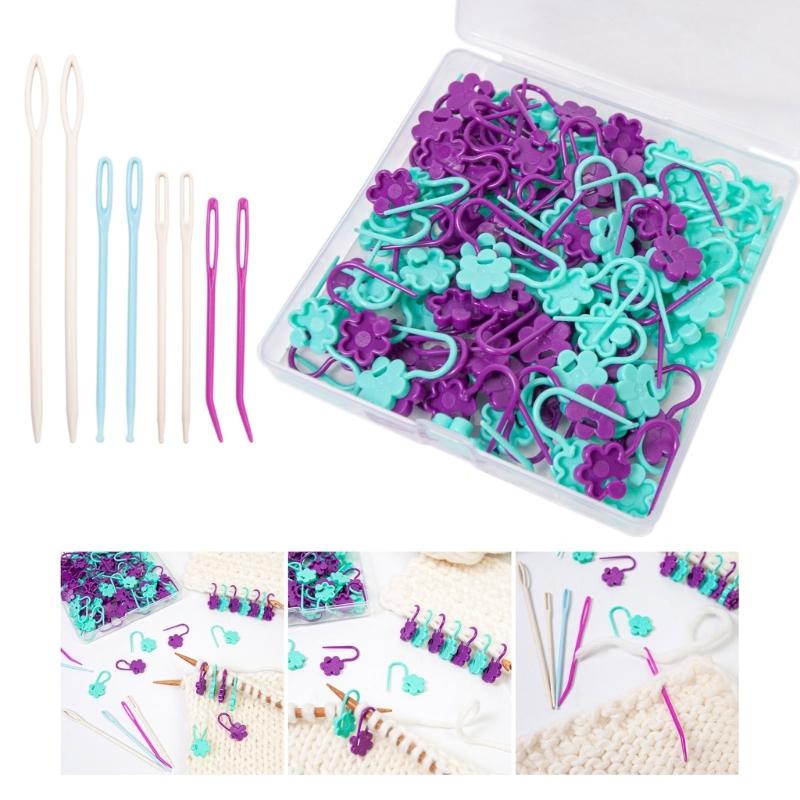 Улучшите свой проект по вязанию спицами и крючком с помощью 100 штук маркеров для петель с замком для вязания крючком и 8 штук швейных игл с большим ушком (6 Прямых швейных игл, 2 иглы с изогнутым кончиком), используется для точной и легкой маркировки мест для шитья и вязания.