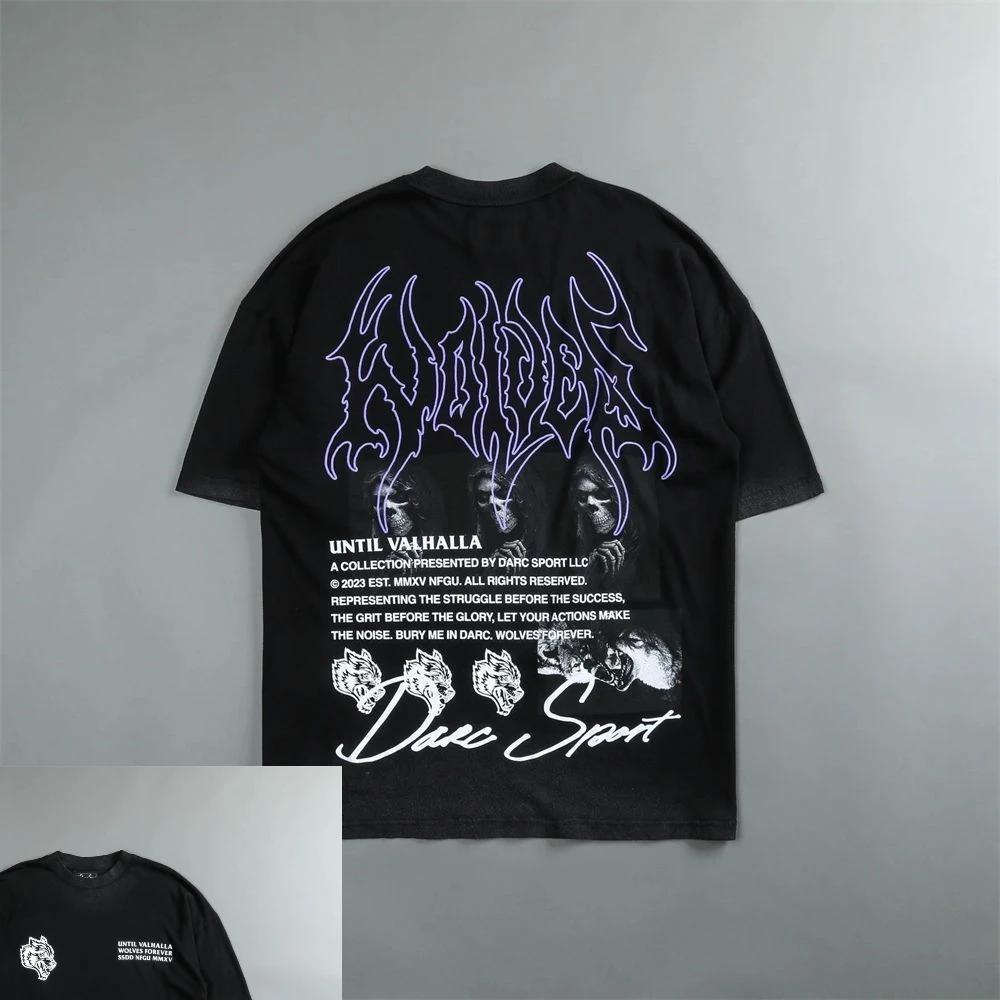 DARCSPORT Футболка с волчьей головой Высокое качество Летняя Городская Фитнес Спорт Свободная повседневная с круглым вырезом Мужская футболка Пара 100% хлопок#Цвет