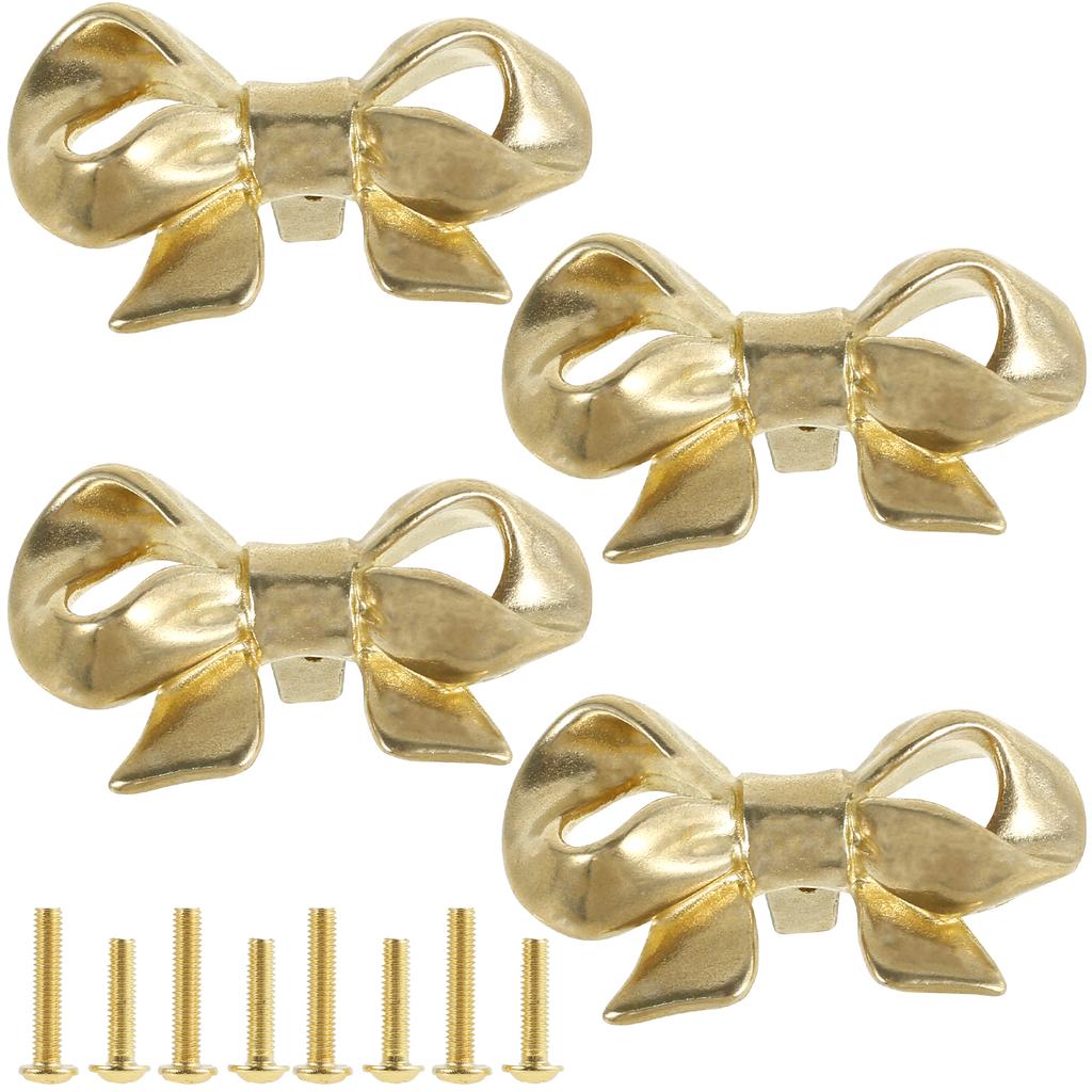 4 PCS Bronze Cupboard Door Pull Knob Vintage Bowknot Drawer Handle Furniture Dresser Knob Single Hole Drawer Knob for Home Decor