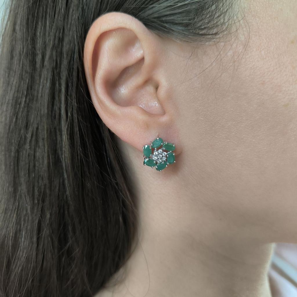 Серебряные серьги с натуральным изумрудом, фианитами (2187776)