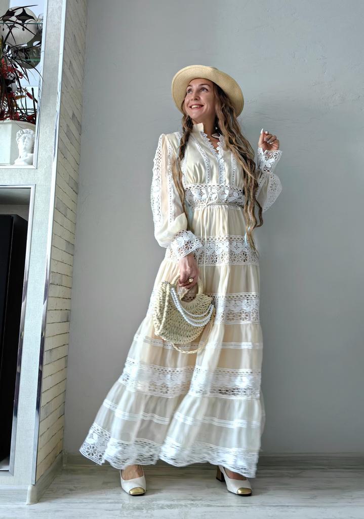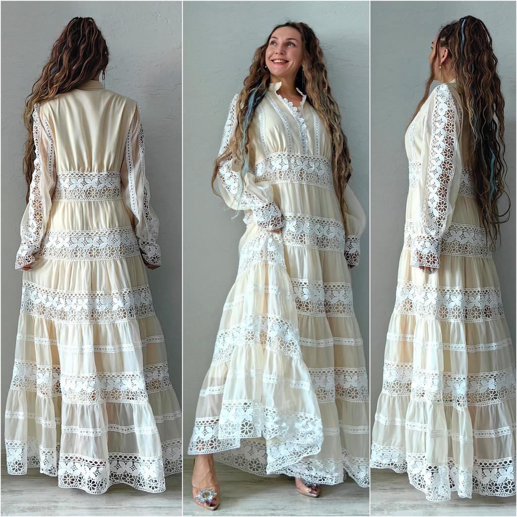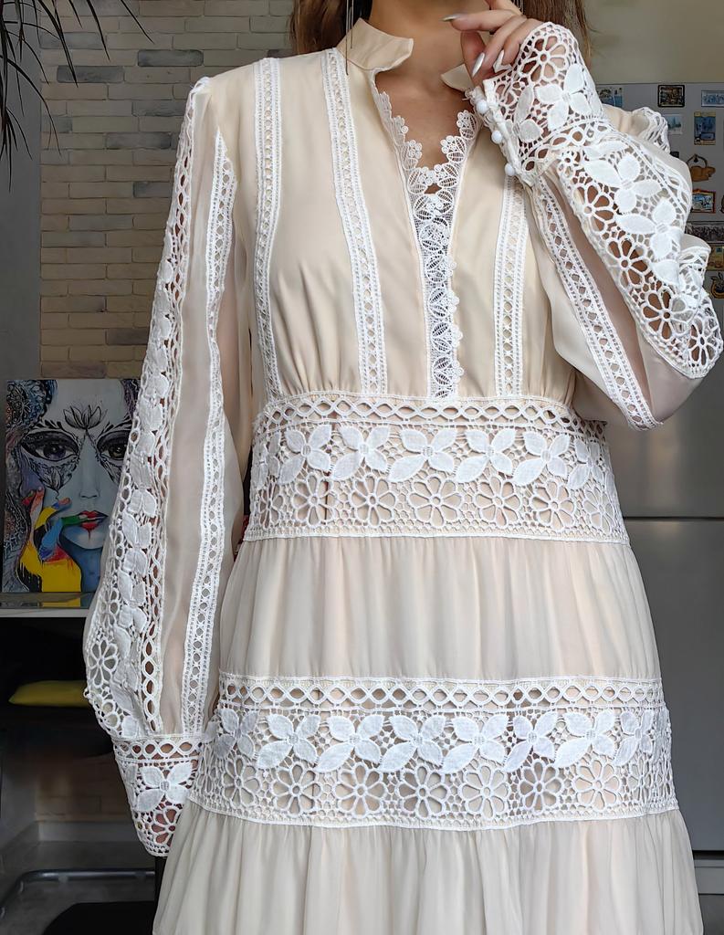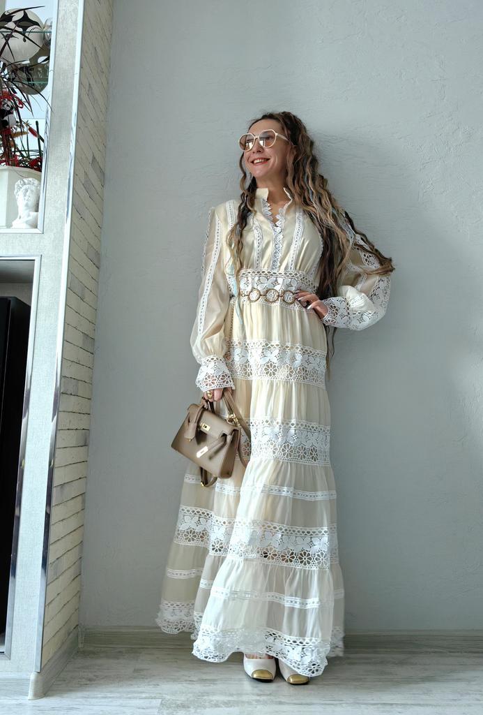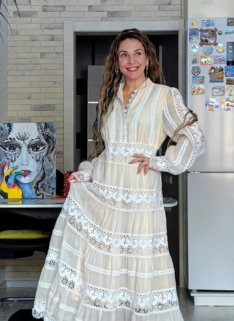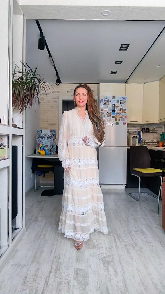 Бежевое макси платье 🤍🤎 Всем солнечный приветик 👋😉 Какое же оно очаровательное, женственное, эффектное и просто красивое 😍 Такие фасоны всегда привлекают внимание и Вы в нём будете себя чувствовать принцессой, а кто-то и королевой 😉 Заказала размер XXL И ошиблась размером 😃 Смело на свои параметры могла брать самый маленький размер А ещё это платье рассчитано на высокий рост Мои параметры: 🎗 рост 160см 🎗 вес 54кг 🎗 длина плеч 40см 🎗 объём груди 93см (75D) 🎗 объём талии 63см 🎗 объём бёдер 93см. Качество: 🤍 несколько видов ткани: шифон и кружево 🤎 ткани много, она тяжёлая, качественная, не тянется и не липнет к телу 🤍 есть синтетический подклад 🤎 не светится 🤍 подклад есть спереди и сзади, а в рукавах его нет, они полупрозрачные 🤎 А-силуэт 🤍 кружево идёт по воротнику, манжетам и горизонтальными широкими полосками по всему платью 🤎 рукава фонарики 🤍 сбоку длинная потайная молния 🤎 на манжетах по три пуговице, а петли резинки 🤍 V-образный ворот, но всё скромно, декольте не открывает 🤎 подклад короче верхней ткани 🤍 швы ровные 🤎 качество отличное. Точные замеры платья в размере XXL: 📏 ОГ - 106см 📏 ОТ - 92см 📏 ОБ - 110см 📏 длина платья от плеча и до отрезной части - 36см 📏 вся длина платья от плеча - 141см 📏 длина плеч - 41см 📏 длина рукава от воротник - 78см 📏 длина рукава от плечевого шва - 68см 📏 объём проймы - 50см 📏 объём манжеты - 24см. Я платьем довольна очень-очень и рекомендую его всеми ручками 🤗💞 Спасибо, продавцу и Джуму 😘 Чмок всех кто со мной на Джумике 😘 Желаю удачных покупок и весны в душе ❤️ До скорого 🙌😊 Песня во втором видео: Vanotek «Paris-cafe» 🎶💃🎶