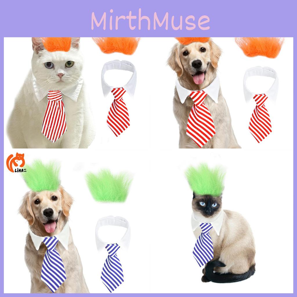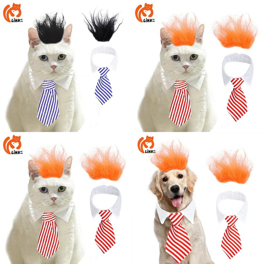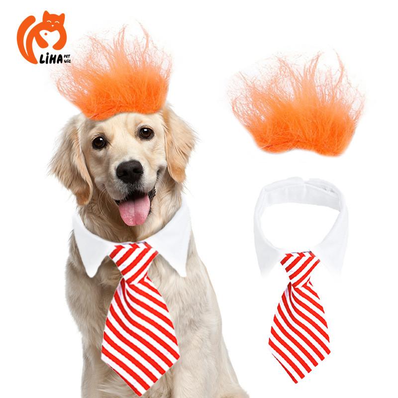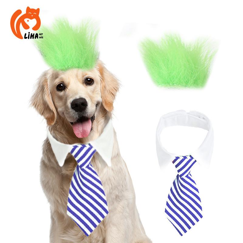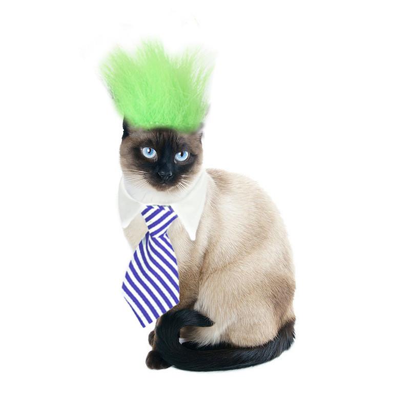 Восхитительный дизайн: Преобразите своего питомца в очаровательного гостя на свадьбе или дне рождения с нашим уникальным париком из пушистых волос, дополненным стильным синим или красным галстуком.