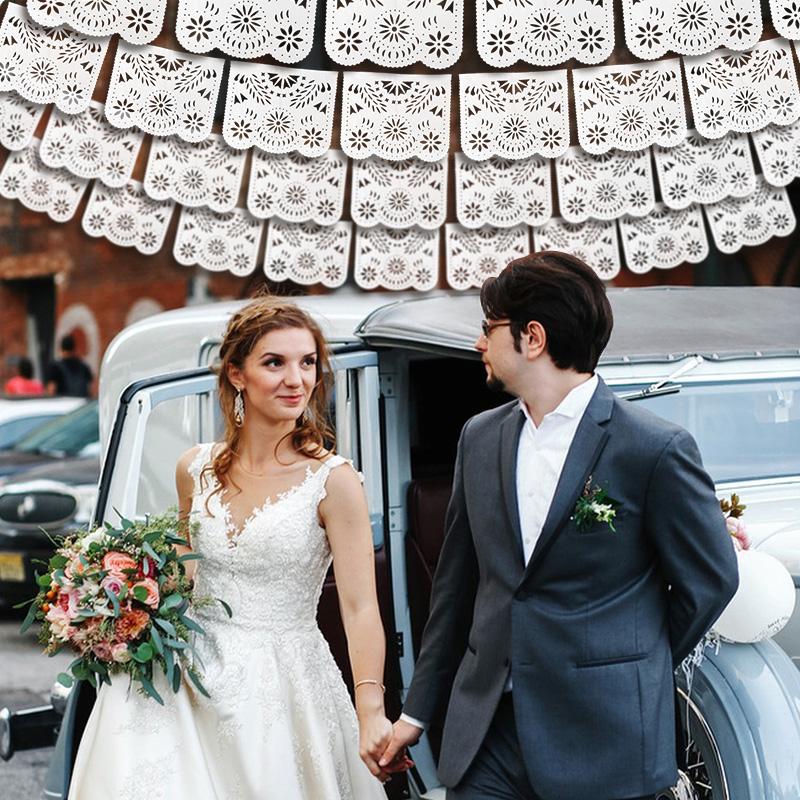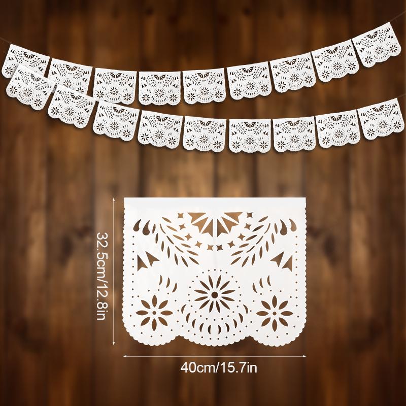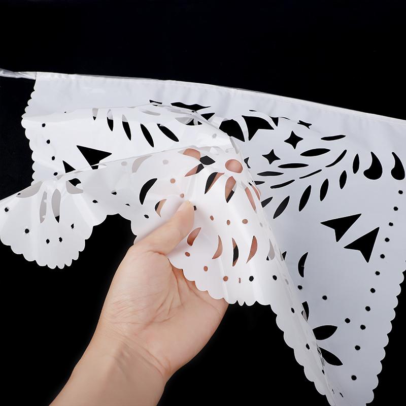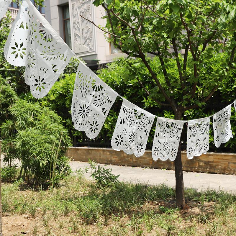 Белый Папель Пикадо Резной Баннер Подвесная Гирлянда для Украшения Мексиканской Вечеринки Свадьбы Дня Рождения Пластиковые Флажки