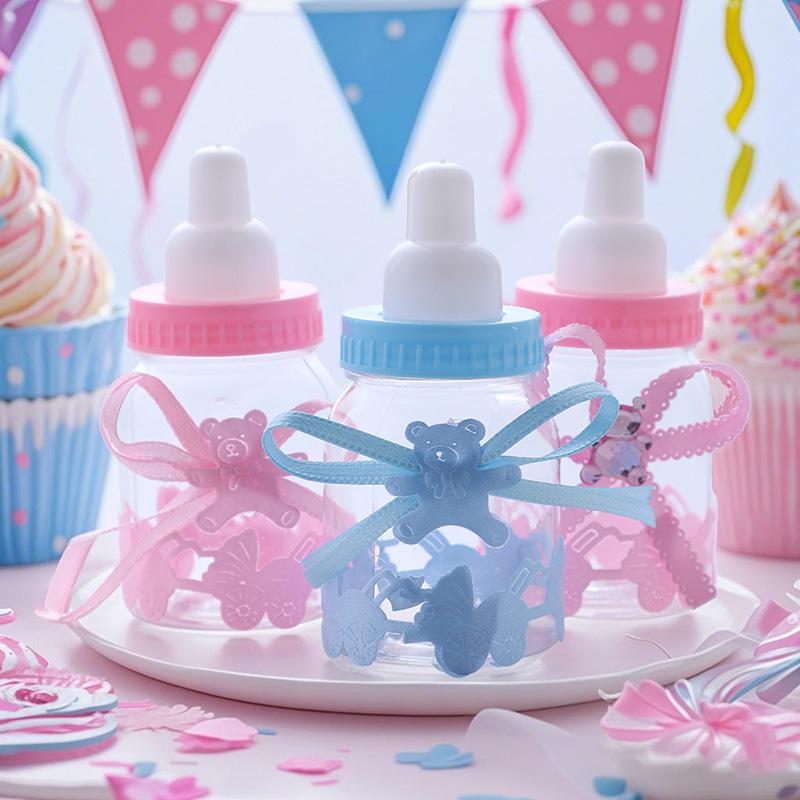 12 шт./набор Прозрачная бутылочка для конфет в стиле кормушки Подарочная коробка Свадьба День рождения Детский душ Мальчик Девочка Новорожденный Младенец Крещение Пакет для конфет