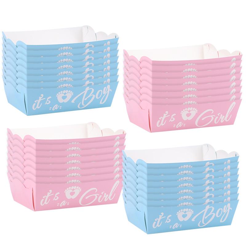 6/12/20 шт. Бумажные подносы для еды для вечеринки в честь определения пола, Коробка для конфет, печенья, закусок, Синий, Розовый, Это мальчик, девочка, Декоративные принадлежности, Детский душ