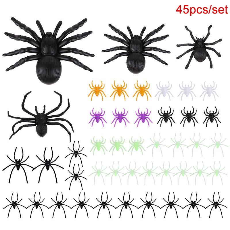 45/70Pcs Realistic Plastic Spiders Halloween Party Trick Prank Toy Props Home Indoor Outdoor Spider Web Decoration Kids Gift