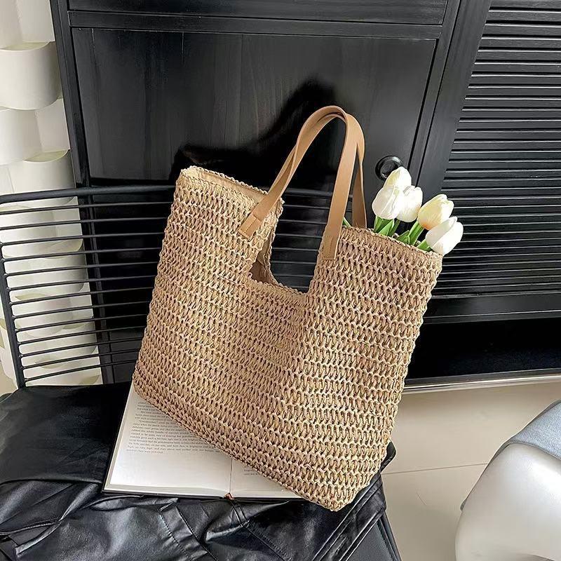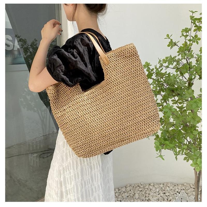 Плетеная сумка через плечо большой вместимости, женская новая простая плетеная сумка подмышку, сумка-тоут, портативная плетеная сумка, пляжная сумка для отпуска