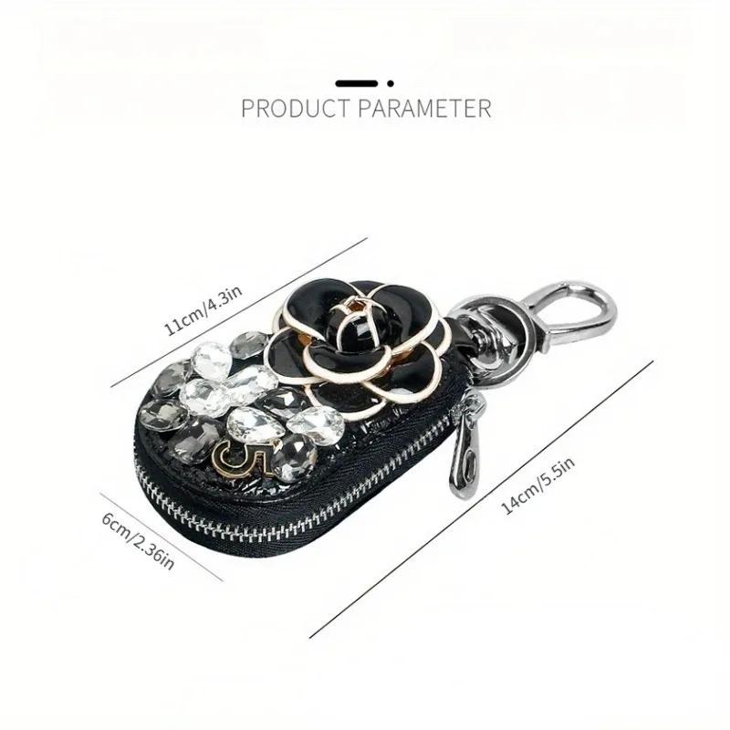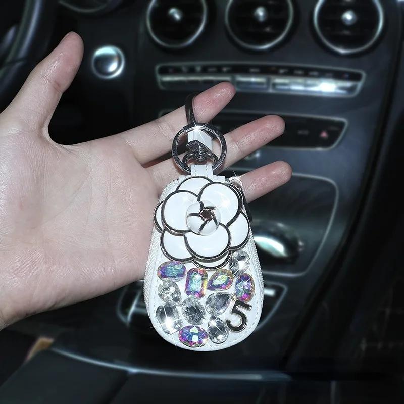 Чехол для автомобильного ключа с инкрустацией камелией и искусственными бриллиантами Чехол для автомобильного ключа со стразами Универсальный защитный чехол для ключа